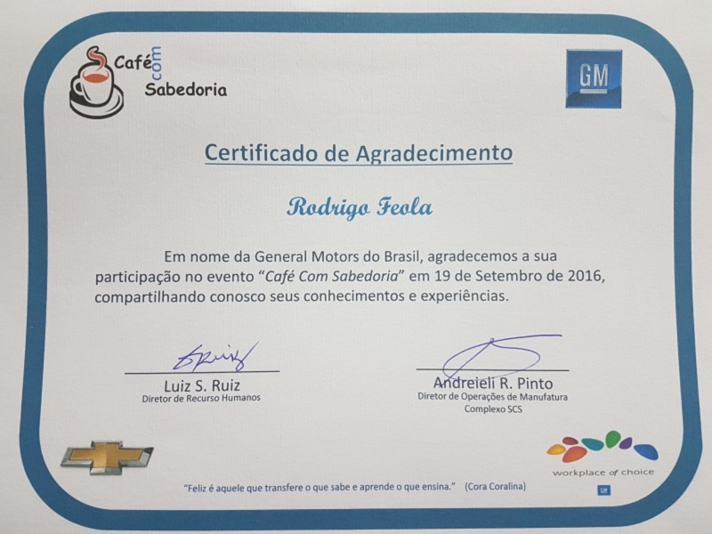 O Rotary Club SCS Olímpico foi convidado pela General Motors a participar do evento Café com Sabedoria para falar um pouco mais sobre Rotary. Esse evento teve a participação do GD Marcos Luiz Zanardo e GA Charly Cury. Esse evento é realizado mensalmente com o Board da General Motors e serviu para encorajar os participantes a desprenderem um tempo para o serviço voluntário. Foi uma proveitosa ação de Imagem Pública.