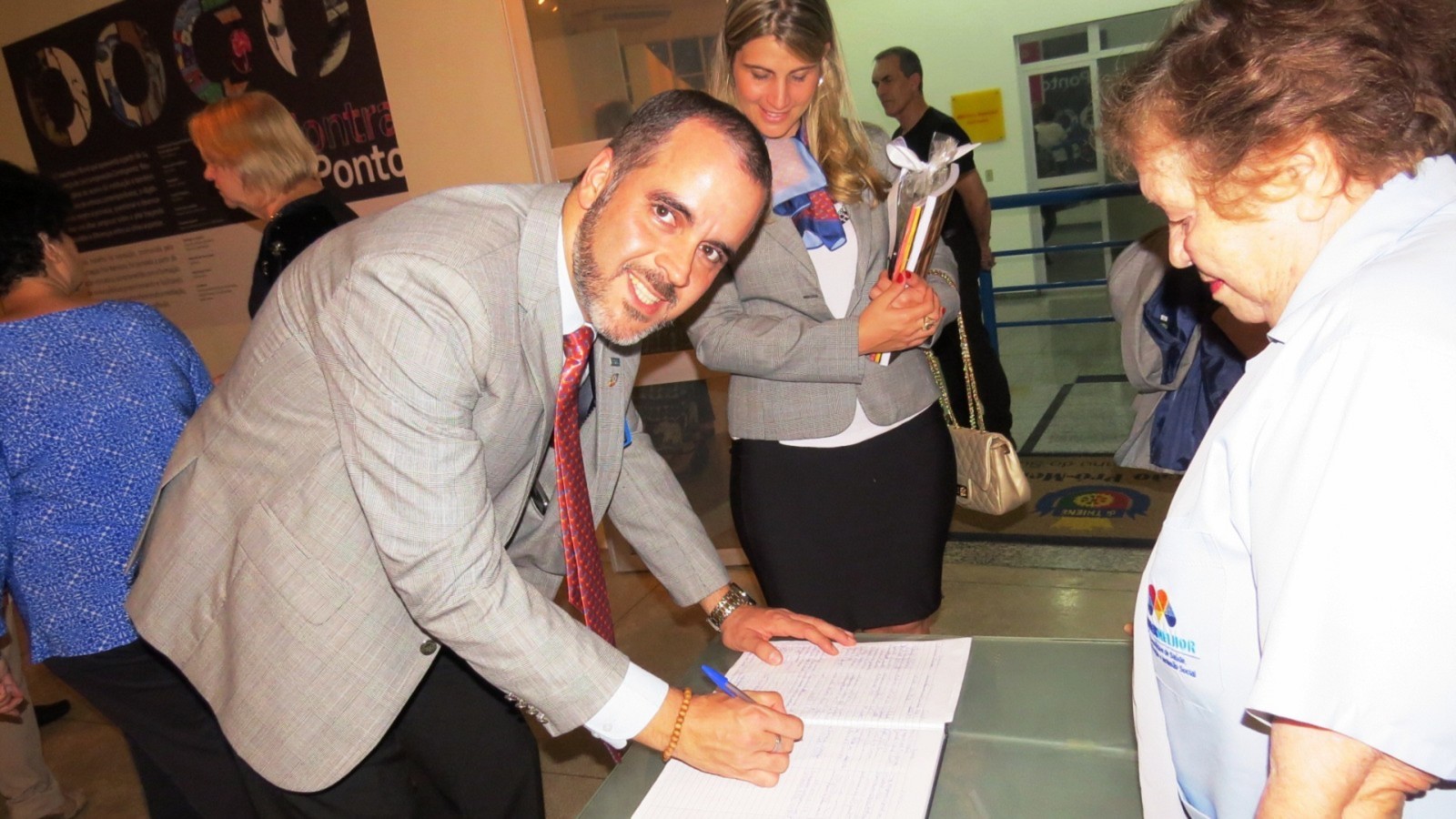 No dia 06 de abril de 2017, o Rotary Club de São Caetano do Sul ? Olímpico, presidido pelo presidente humanitário 2016-2017, Rodrigo Féola, recebeu em visita oficial ao Clube o Governador do Distrito 4420 do Rotary International, Ronaldo Varella. A recepção ao casal governador Varella e Monica, ocorreu na Praça dos Imigrantes ( também conhecida como a Praça do Chafariz ), na confluência das avenidas Presidente Kennedy e avenida Tijucussú, na entrada do Bairro Olímpico, onde os rotarianos inauguraram o Marco Rotário Olímpico instalado nessa praça. Na sequência, o casal governador visitou as instalações da Fundação Pró-Memória de São Caetano do Sul, onde foram recebidos pelo Secretário de Cultura de São Caetano do Sul, João Manuel da Costa Neto e pelo Presidente da Fundação Pró-Memória, Charly Farid Cury (também atual Governador Assistente da Área 4 do Distrito 4420 do Rotary International e associado do Rotary Club de São Caetano do Sul ? Olímpico), onde tiveram a oportunidade de Conhecer as suas instalações. Após um café que foi servido na sala de reuniões, onde o Governador Varella pode ouvir um pouco das atividades da Fundação Pró-Memória, foram iniciadas as visitas aos diversos recintos do Complexo que compõem a Fundação. Iniciando pela Academia Paulista de Letras, onde recebeu um exemplar da revista Tamises, publicada pela Academia, o Governador Varella ficou conhecendo a história dessa instituição, que preserva a memória da cidade através da publicação de livros escritos por seus associados. Na sequência, na visita à Pinacoteca, o casal governador Ronaldo Varella e Monica tiveram a oportunidade de apreciar as obras expostas na exposição intitulada Contraponto, que reúne obras do acervo da Pró-Memória e trabalhos de artistas contemporâneos da cidade, cujo objetivo é provocar e questionar um olhar perspicaz sobre a arte, traçando paralelos e diferenças entre as obras expostas. O Governador Varella parabenizou os rotarianos e os diretores da Fundação Pró-Memória, destacando a importância da preservação da história e da cultura das cidades. Em seguida, os rotarianos dirigiram-se à Casa da Amizade de São Caetano do Sul, onde o Presidente Rodrigo Féola e o Governador Ronaldo Varella realizaram a reunião particular para exposição dos principais feitos e projetos realizados pelo clube nessa Gestão 2016-2017 e, à partir das 20:30 horas, os rotarianos receberam o casal governador no Salão Nobre da Casa da Amizade, onde ocorreu a festiva de 30º aniversário de fundação do Rotary Club de São Caetano do Sul Olímpico, contando inclusive com a presença de 4 sócios fundadores do Clube e do Governador do Distrito 461, ano rotário 1986-1987, José de Faria Granja. Após as solenidades e homenagens a diversos rotarianos, houve a troca de presentes entre os casais governador Ronaldo Varella e Monica e casal presidente do Rotary Club de São Caetano do Sul Olímpico, Rodrigo Féola e Camila, foi servido um delicioso jantar aos presentes.